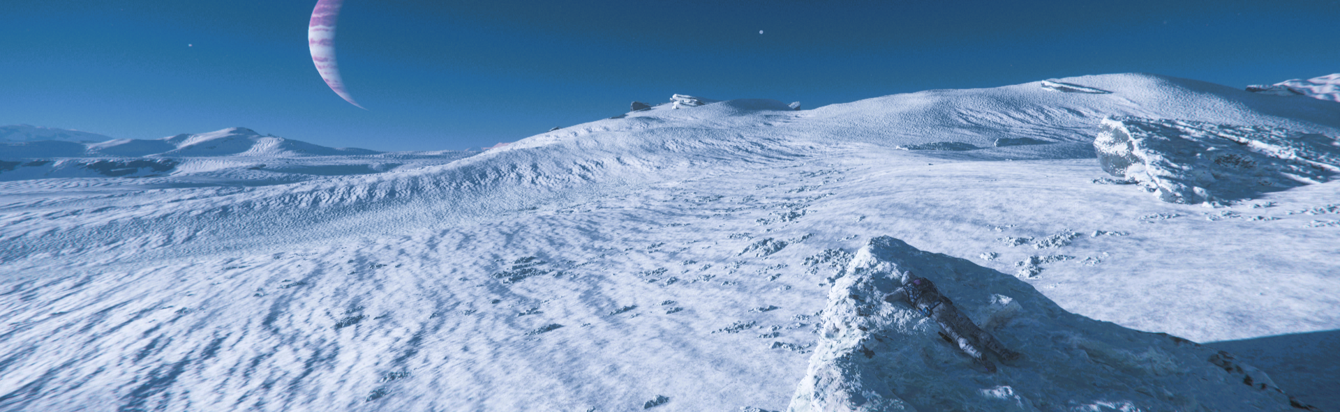 Mein Atem stockte und schmerzte. Das konnte doch nicht war sein. Ich spürte den Herzschlag in meiner Brust, das intensive Licht und meine weit aufgerissenen Pupillen. Gepresst ließ ich die Luft aus den Lungen fahren und setze mich augenblicklich auf. Es war keine Zeit zu verlieren. Mein Gewehr köchelte gerade mit dem Rest der Limping Owl, doch meine geladene Coda war noch treu an meiner Seite. Unter Schmerzen und jauchzen mahnte ich meinen Körper an die verletzten Gliedmaßen zu bewegen. Nun galt alles zu tun, um zu überleben oder - im besten Fall - mit einigen Kopfschmerzen in der Regeneration aufzuwachen. Mit der linken Hand hielt ich mir die Hüfte und mit der rechten Hand nahm ich die Coda aus dem Holster. Während ich mich humpelt von der Absturzstelle entfernte, landete Darek in der Zeus seelenruhig einige Meter entfernt. Ich hatte wohl mehr Schwein, als ich Verstand hatte, denn dort wo er landete, hatte er zwar einen guten Blick auf das Wrack, jedoch ich wurde verdeckt. Ich duckte mich, keuchte mit flacher Atmung und warf mich zwischen die Steine. Meine Hand, gar mein ganzer Arm zitterte und für einen sauberen Schuss war das nicht gut genug. Ich legte den Arm ab, ließ mich nieder, machte mich flach und lang. Jeder Atemzug war geboren mit einem Stechen und Brennen. Während ich da also so lag, ließ Darek die Rampe hinab und schritt mit einem Gewehr im Anschlag auf die Absturzstelle zu. Mein Herz pochte wie wild und ich spürte diesen heißen Schmerz, der aus meinem Bein durch den ganzen Körper strahlte. Zu allem Überfluss lief mir immer noch Blut die Schlefe langsam und in Seelenfrieden hinab, versperrte mir ab und zu die Sicht. Ich wechselte das Bewusstsein, für einige Momente war ich total klar, dann wieder in Tagträumen und Delirium versunken. Als Darek so nah war, dass ich seine Stampfen hören konnte, blieb mir der Atem weg und ich hätte schwören können, dass mein Herz stehen geblieben war. Dann stand er über mir, blickte den Abhang hinab auf die zerstörte Cutlass. Erst hatte er das Gewehr im Anschlag, ließ es dann aber langsam sinken. Da war ich nun, auf dem Boden, unter Schnee verdeckt, vielleicht wenige Zentimeter entfernt. Langsam hob ich meinen rechten Arm in der die Coda ruhte. Langsam, ganz langsam. Darek drehte sich - er wollte zurück zur Zeus - und trat mir dabei unwissentlich in die Seite.