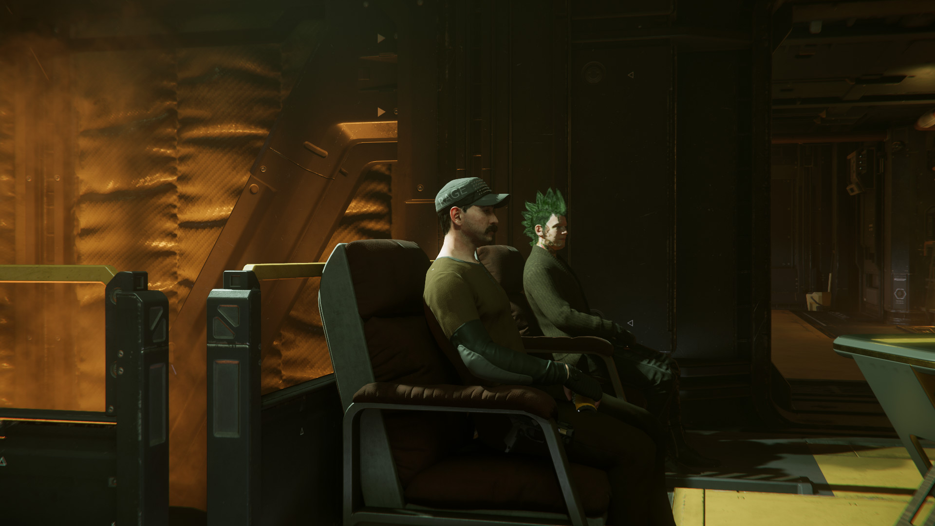 Als ich ankam, aber alles war nicht so. Stimmung war angespannt, irgendwie fast gefährlich. Rappel hatte gerade einen dieser chaotischen Tage, wo niemand weiß, ob er den nächsten Moment überlebt. Eigentlich wollte ich nur das Geld nehmen, abhauen und Tag vergessen. Aber es lief anders. Durch das ganze Durcheinander schaffte ich irgendwie, in das Schiff von diesem Fremden zu kommen, um an mein Geld zu kommen. Ziemlich ungeschickt, wie sich herausstellte.