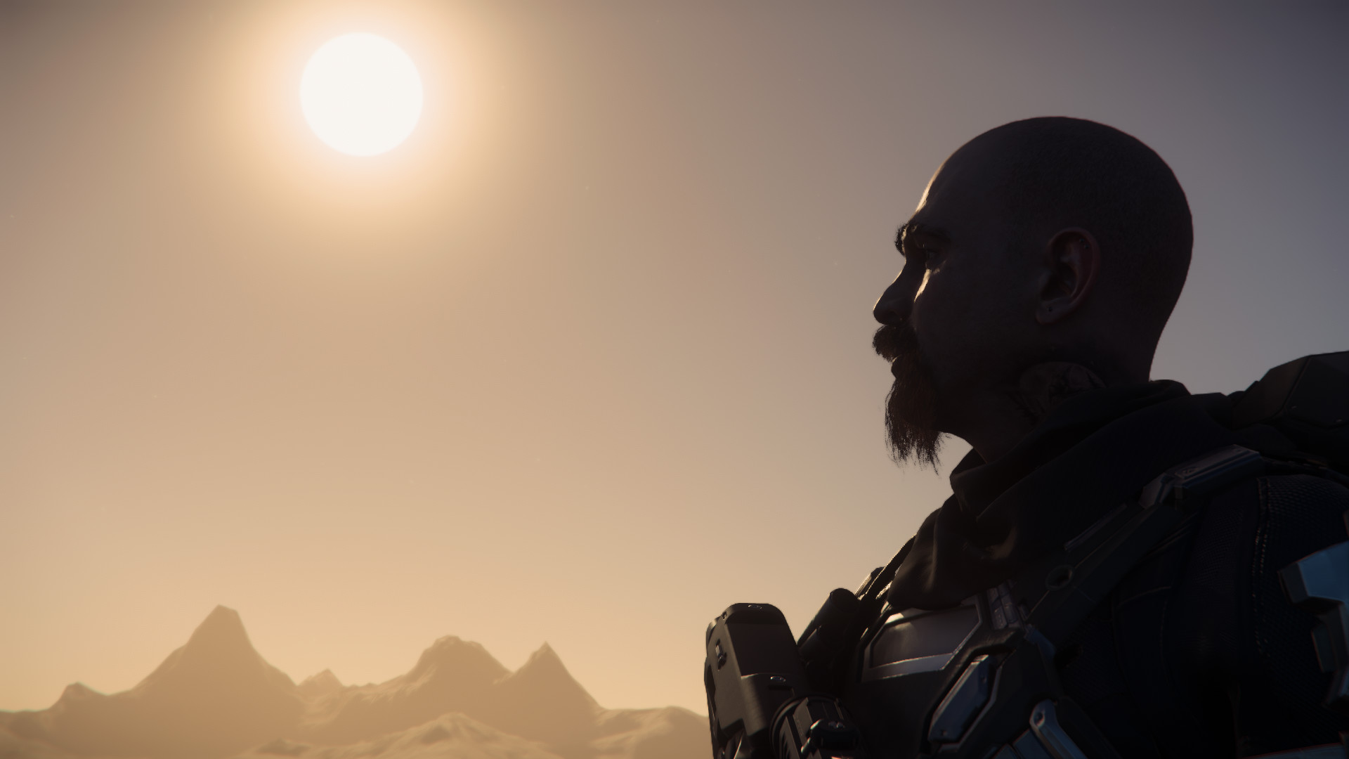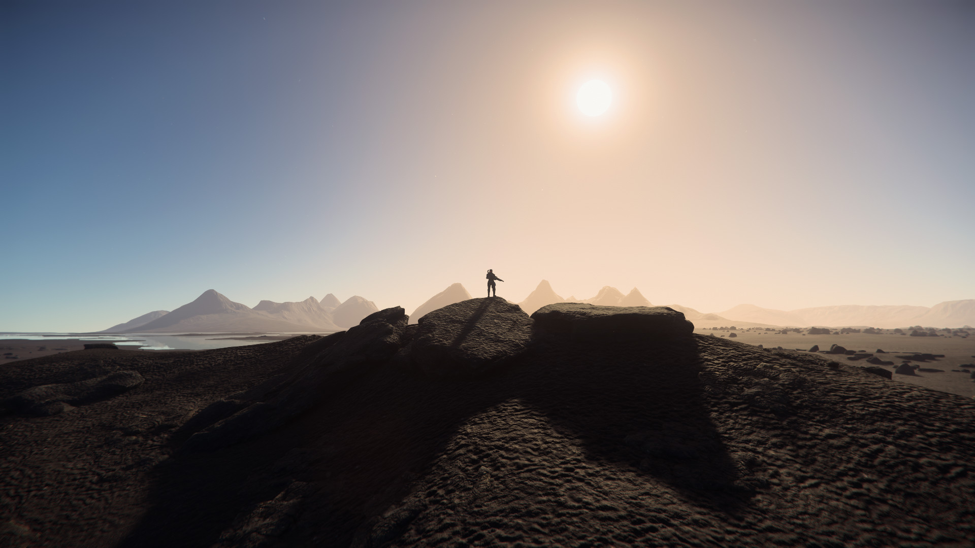 Also, was tun? Richtig: Laufen. In der prallen Sonne, durch die kahle Wüste von Bloom. Hin und wieder ziehen Schiffe über uns hinweg – aber keine Chance, sie zu erreichen. Doch dann, plötzlich: Eine Corsair landet in der Ferne.