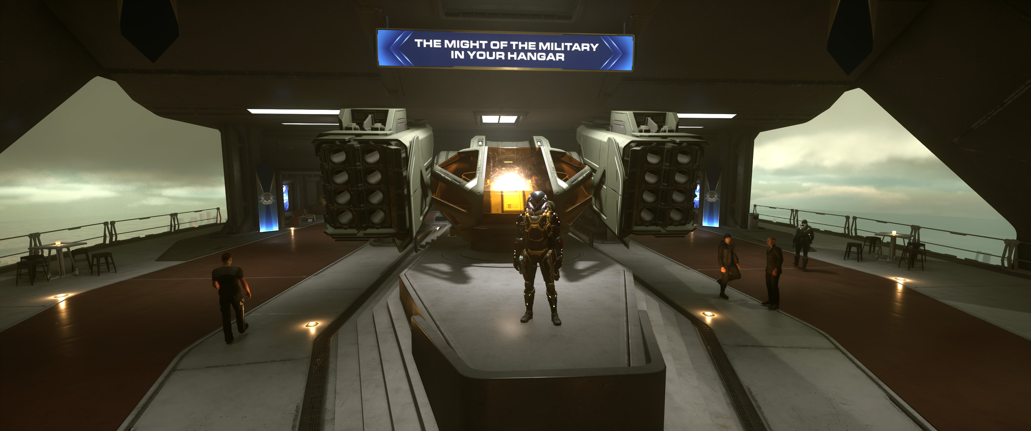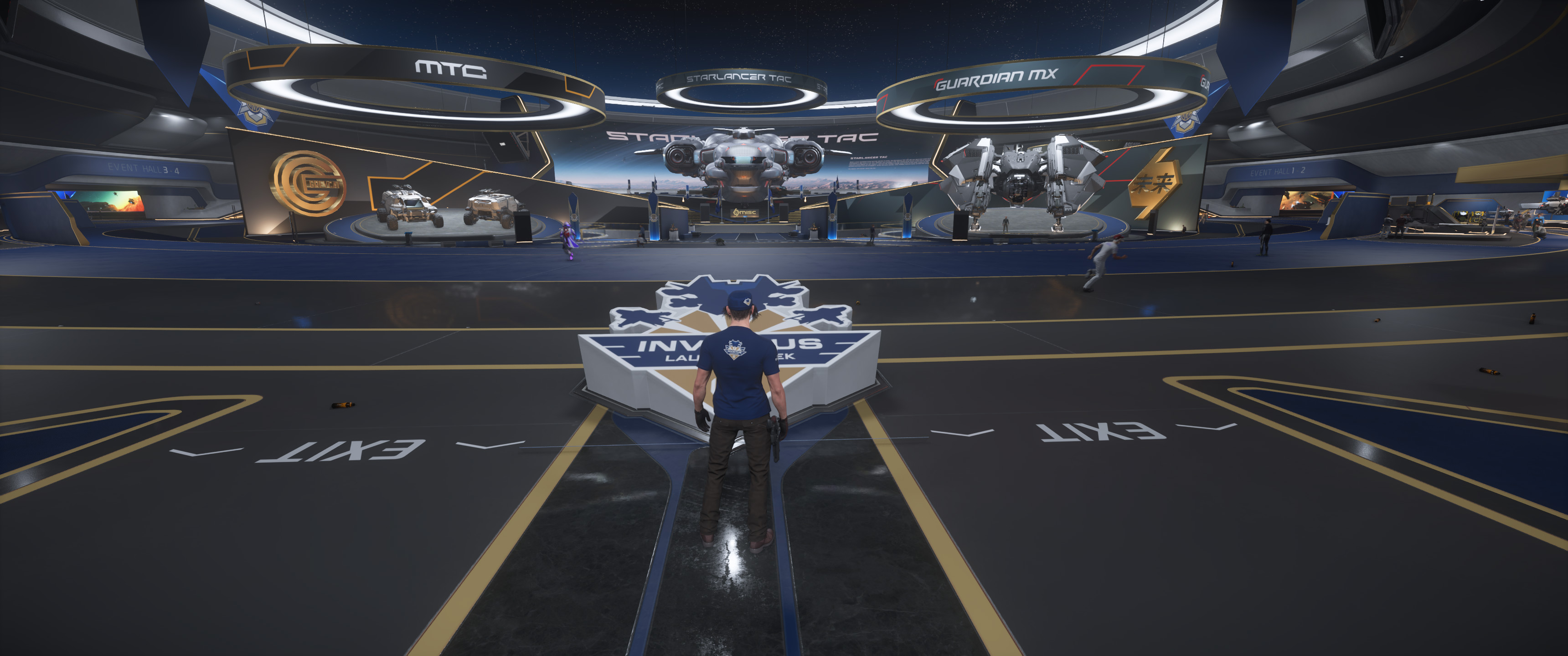 Heute war ein besonderer Tag: Ich besuchte die Invictus Launch Week auf Area18 – das alljährliche Spektakel, bei dem die UEE Navy ihre mächtigsten Schiffe präsentiert und zivile Hersteller ihre neuesten Modelle vorstellen. Schon beim Anflug auf den Messekomplex spürte ich die Aufregung. Überall Banner, Sicherheitskräfte und eine Atmosphäre, die förmlich nach Sternenabenteuern roch.