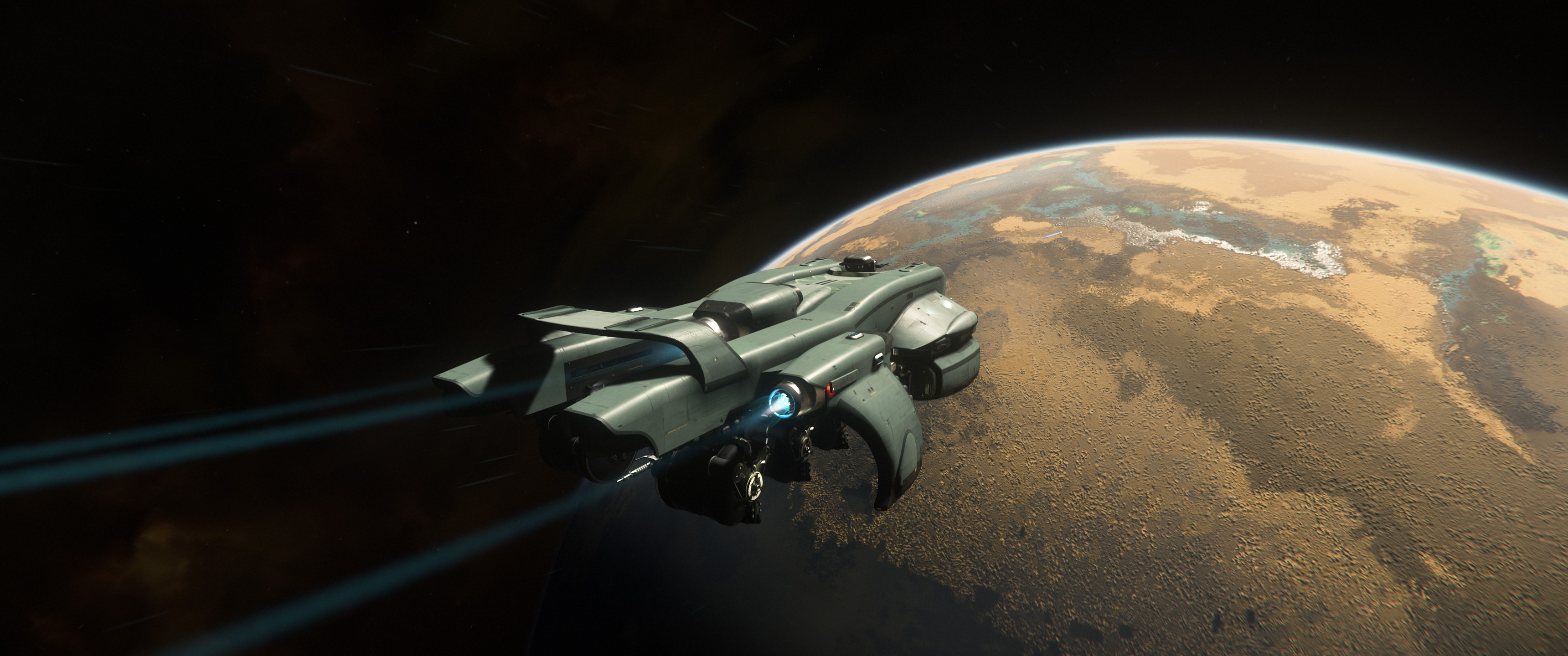 Wir sind jetzt schon seit drei UEE Standardtagen, auf VUUR. Drei Tage, in denen keine Dramen stattfanden, keine Unfälle. Die Technik funktionierte. Das einzige Problem war, dass der Kaffee in der Kantine der Starfahrer immer zu schwach ist. Die letzten Tage waren fast wie Urlaub. Stimmt! Ich vergaß! Auf Fuego haben wir noch eine Sandhöhle besucht. Wir wollten Mineralien finden, doch haben wir dort nur Sightseeing gemacht. Zumindest fühlte es sich so an. Das hat sehr gut getan.