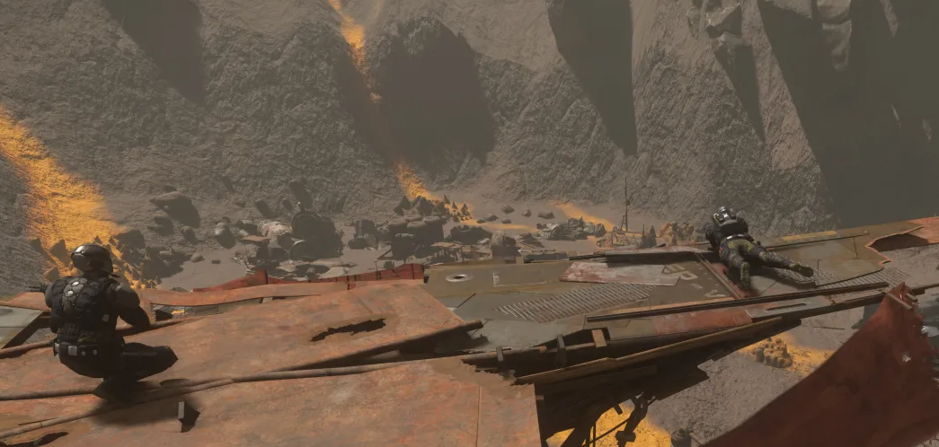 Zero ist zurück. Noch auf VUUR tauchte er plötzlich in unserem Basislager auf. Ich dachte, er müsste sich erstmal eine ordentliche Standpauke anhören – einige waren sauer, dass er so lange verschwunden war. Er war im Stanton-System unterwegs, hatte dort jemanden getroffen – einen „Stormannsson“ oder so –, um einen Verdacht zu überprüfen. Plötzlich sprach er von einer „ENOS-Geschichte“, einer „ENOS-Kampagne“. Angeblich etwas, das die gesamte UEE hätte zu Fall bringen können. Ich selbst wusste davon nichts – vielleicht konsumiere ich die falschen Medien. Wir haben ja immerhin einen Journalisten bei uns... den hätte ich fragen können. Aber ich hatte kaum Kraft, noch mehr Fragen aufzuwerfen. Es war ohnehin schon zu viel passiert.