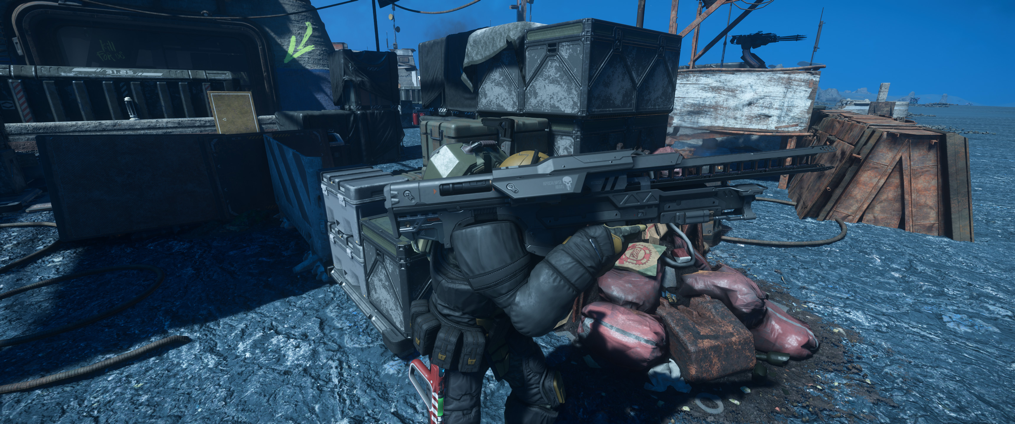 – Sowie eine defekte Avenger Rengade, wie ich die hier wegbekommen soll, dass weiß ich noch nicht. Aber als Lagerfläche kann ich sie nutzen.