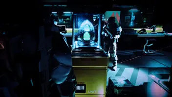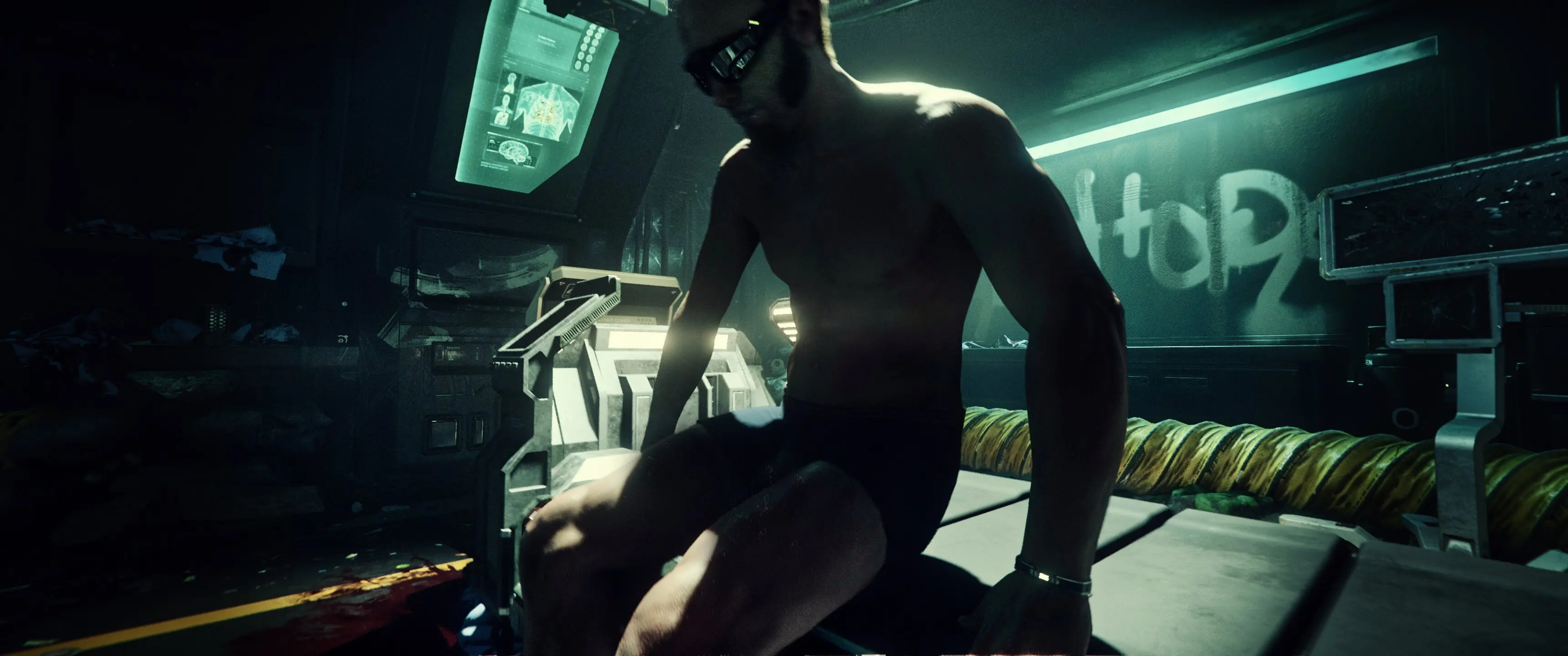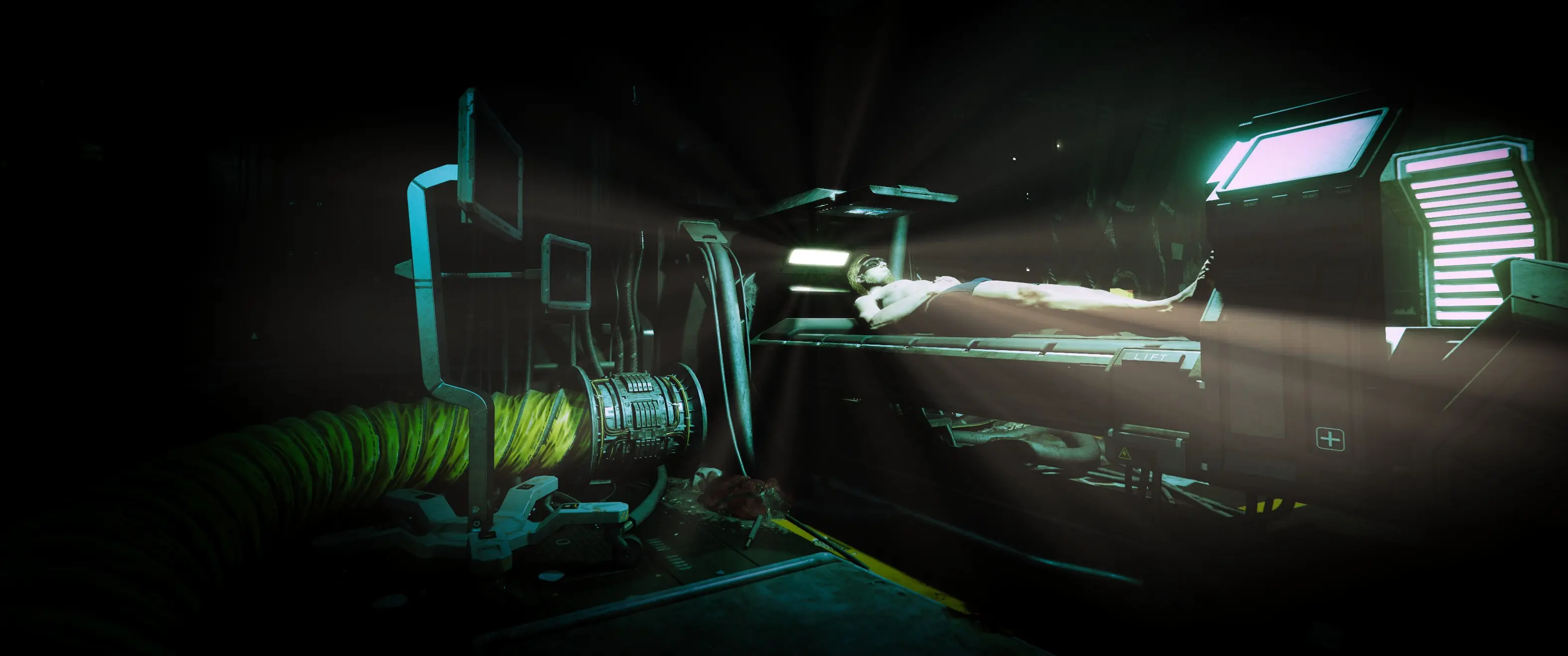 Ein stechender Schmerz zuckt durch meinen linken Torso. Eine dumpfe Kälte breitet sich aus. Mir wird schwarz vor Augen. Ich bin getroffen! Ich falle zu Boden und bleibe auf einem Flur liegen. Um mich herum Schüsse. Das Gebrüll dieses Monsters ist wieder da — unerträglich laut. Im Raumhelm kann ich meinen Kopf drehen und sehe, wie rot-schwarz gekleidete Typen über einen Berg Leichen steigen.