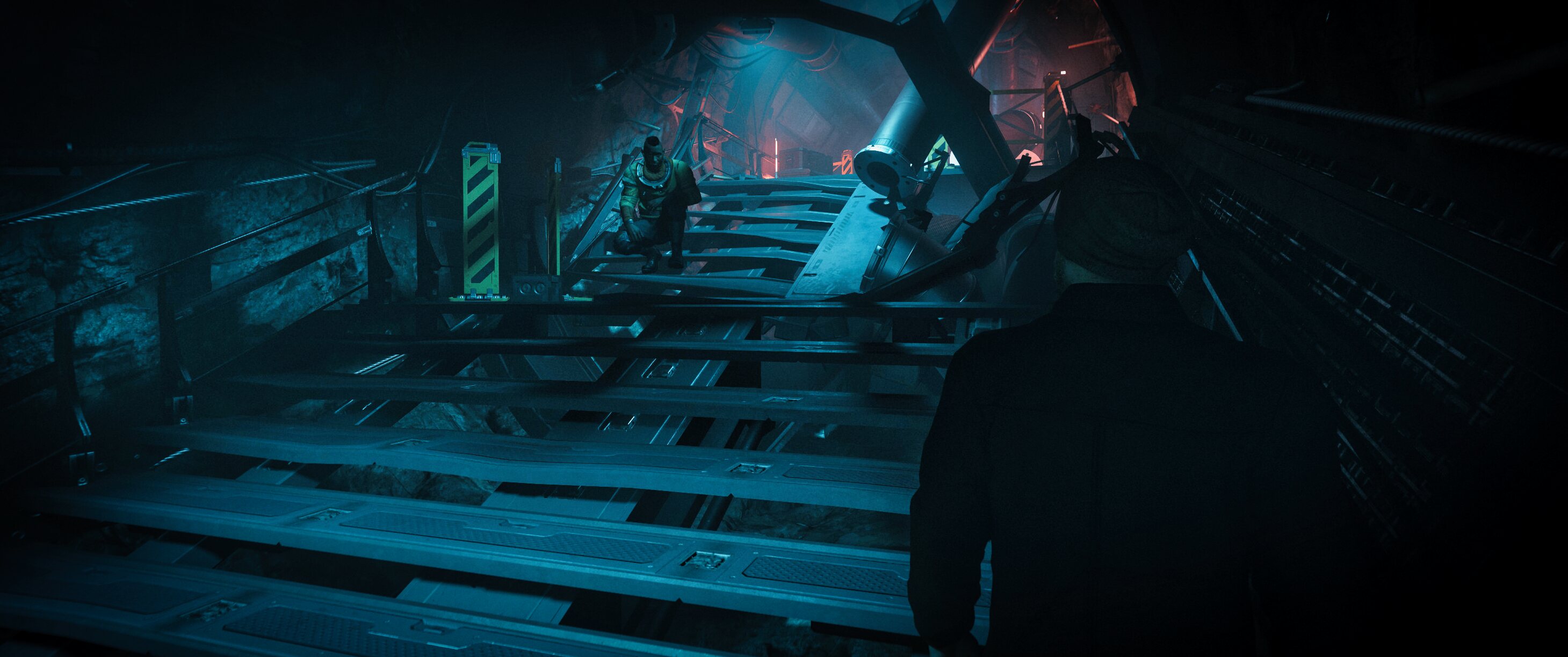Pike entdeckte als Erster eine Art stillgelegten Hangar oder eine Garage. Wir schlichen hinein. Wir durchsuchten Quadratmeter für Quadratmeter den ganzen Hangar. In diversen Kisten fanden wir Kleinigkeiten, die wir teilweise an uns nahmen oder einfach wieder wegwarfen. Merkwürdigerweise lagen um die leeren Container und Maschinenblöcke einige Feuerwaffen am Boden. Es musste also kurz zuvor eine Auseinandersetzung gegeben haben. Wir waren auf der Hut. „Da ist einer! Den kann ich ja mal interviewen“, sagte Friedrich, als er sich einer in der Ecke kauernden, fast nackten Person näherte. Sie gehörte wohl zur Station, aber nicht zum Wachpersonal. Eine kurze, energische Befragung später machte Friedrich sich weiter auf die Suche. Wir haben dem Kerl nichts getan, außer ihn zu erschrecken. Es gab eine Art Käfig, der aus Gerüsten gebaut wurde. Dieser Bereich war tatsächlich mit lasergesteuerten Sprengfallen gesichert. Wir entschärften zwei von diesen Sprengfallen auf die „rustikale Art“ und machten richtig Tempo bei der weiteren Durchsuchung. Bru hatte einen Zugangskartendrucker entdeckt, den er gleich anwarf, um sich eine Zugangskarte zu was auch immer auszudrucken. „Endlich! Ich glaube, ich habe einen Treffer gelandet!“, rief Friedrich. Triumphierend hielt er drei Injektions-Pens hoch, auf denen das Kürzel „W23(K6)“ zu lesen war. Gut. Wir schienen auf der richtigen Fährte zu sein.