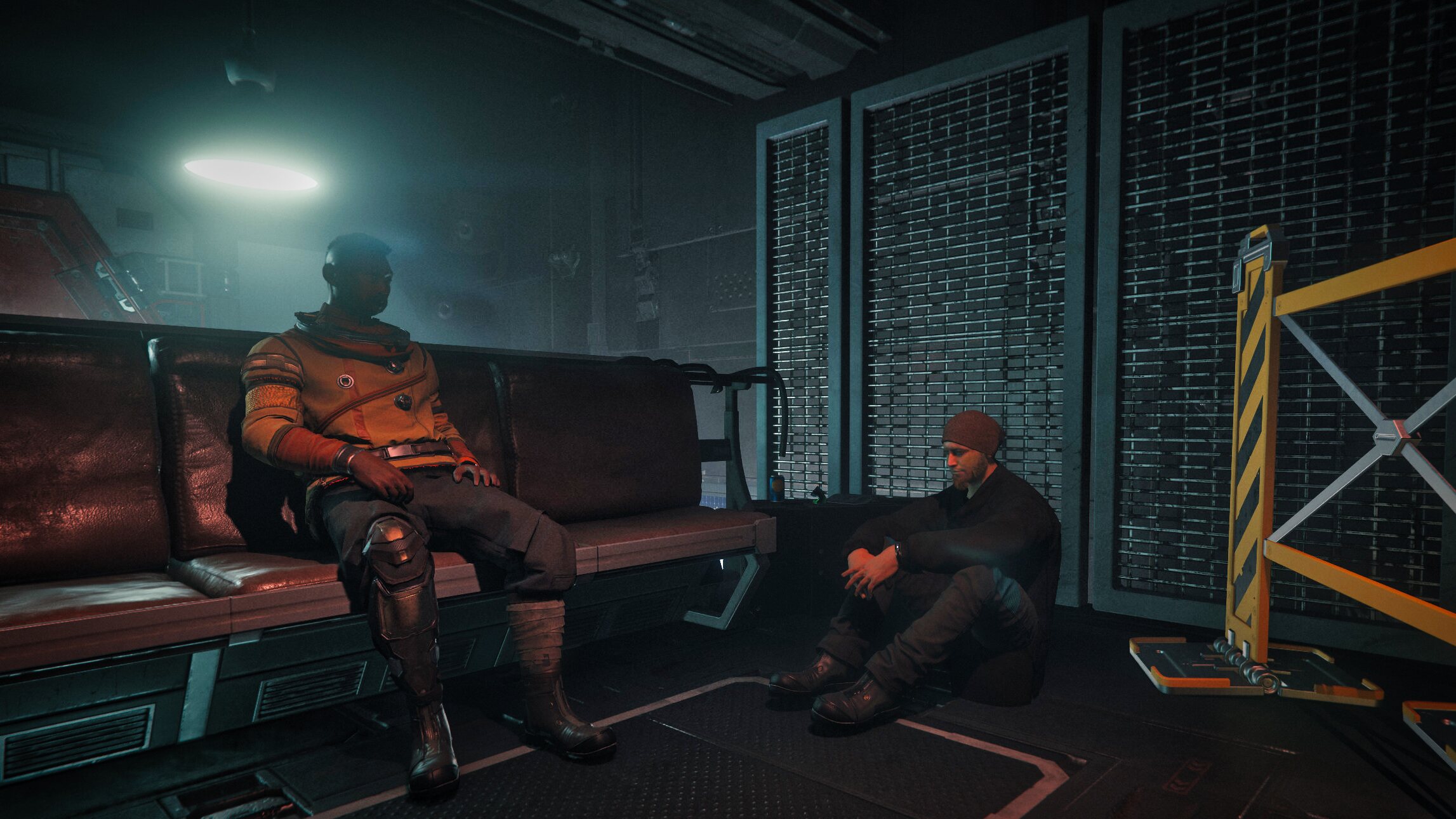 Stationszeit hin oder her – ich glaubte, hier auf GrimHex gäbe es keine Tag- und Nachtrhythmen. Wie auch. Ich setzte mich in die hinterste Ecke der GrimHex-Bar. Zum ersten Mal hatte ich die Muße, mir das Kommen und Gehen in dieser Bar anzusehen. Es war interessant, wie unterschiedlich die Leute auf mich wirkten. Da waren die Klassiker, die man hier sicherlich vermuten würde: abgeranzte Söldnertypen. Aber auch Glücksritter anderer Art. Leute in Miningausrüstung, die wohl aus dem Yela-Belt auf die Station kamen, um ihre Gesteine zu verkaufen oder einfach nur ein paar Rust zu kippen. Dann noch die ganz Verschwiegenen, die sich ähnlich wie ich allein an einen Tisch setzten und die Leute beobachteten. Wer wusste das schon? Ich konnte mir denken, dass der ein oder andere hier wohl auch ein Kopfgeldjäger sein könnte. Aber ich hatte einfach genug von dieser Paranoia. Wenn sie mich erwischen sollten, dann wäre es eben so. Mein Blick schweifte über die Tische. Ich sah mir die Pärchen, die Kumpels und die Einzelgänger an, die scheinbar wie ich keine Ruhe fanden. Ein stetiges, gedämpftes Murmeln erfüllte die Bar – ganz anders als die Lautstärke in den Bars von Lorville. Jeder, der etwas zu erzählen hatte, wollte wohl nur, dass das Gegenüber es verstand. Manchmal hörte ich ein einzelnes Lachen, irgendein zotiger Witz wurde wohl gerissen.