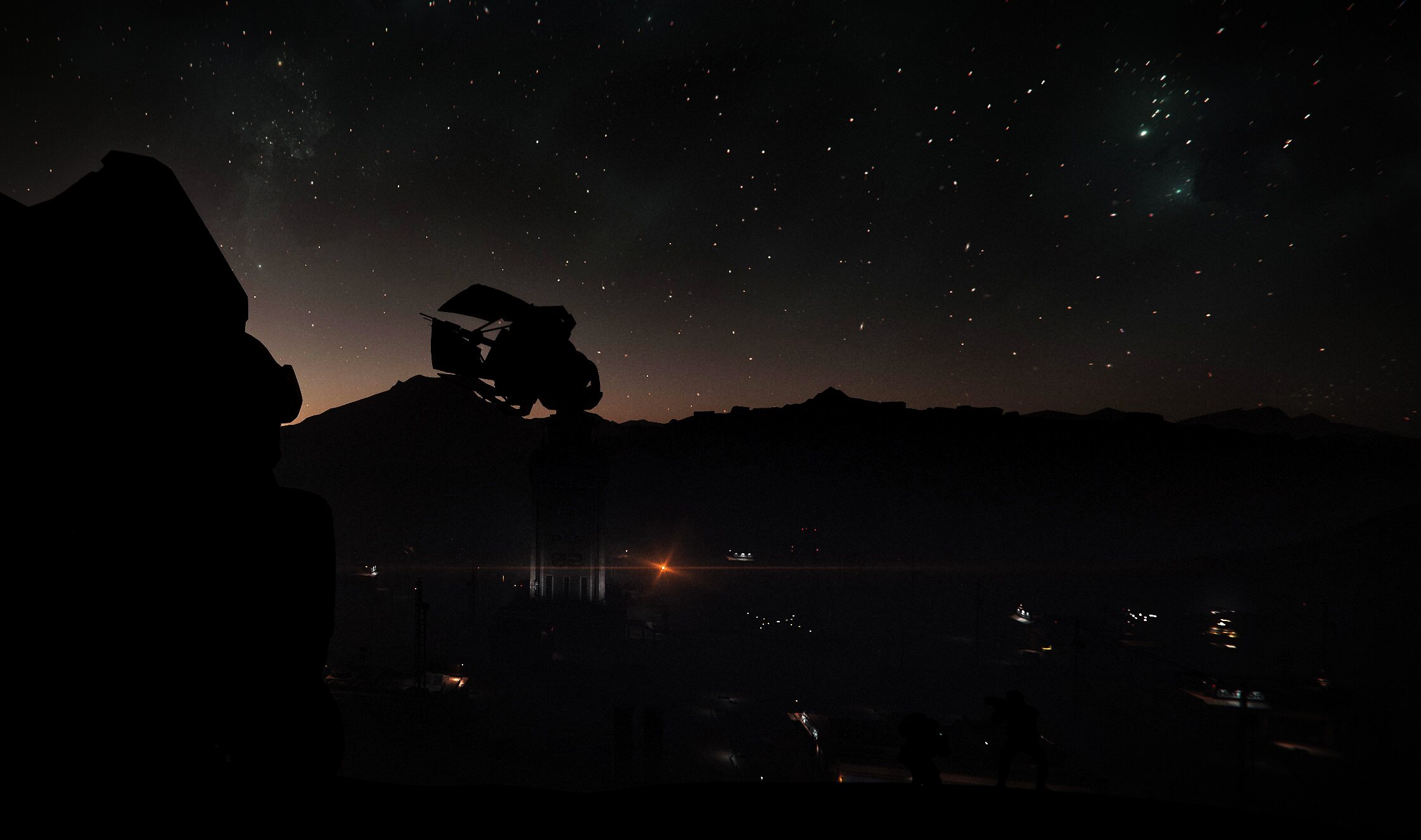 Wir mussten über eine kleine Anhöhe klettern, um die Hathor-Station sehen zu können. Es war Abend. Von der Station waren fast nur noch Lichter und die Silhouetten der Gebäude zu erkennen. Langsam und geduckt – Lyrana hatte uns ja einiges beigebracht, was das Bewegen im Gelände anging – näherten wir uns dem Gebäudekomplex. Ich hatte unweigerlich Flashbacks von der Station auf Pyro IV. Mein Puls beschleunigte sich und ich musste mir leise Kinderreime aufsagen, um wieder runterzukommen. Pike war jetzt der geschickteste von uns, wenn es um solche Infiltrationen ging. Er ging voran und führte uns durch kleine, ausgetrocknete Bachläufe und hinter Felsen versteckt an die Station heran. „Da sind auf jeden Fall Wachen“, murmelte er und wies uns an, die Köpfe unten zu halten. Noch auf dem Kamm, in sicherer Entfernung zur Station, konnten wir Mündungsfeuer erkennen. Es schien aber nicht auf uns gerichtet zu sein. Außerdem fühlte es sich so an, als hätten wir es mit gelangweilten Wachen zu tun. Ergo näherten wir uns von der anderen Seite der Station.