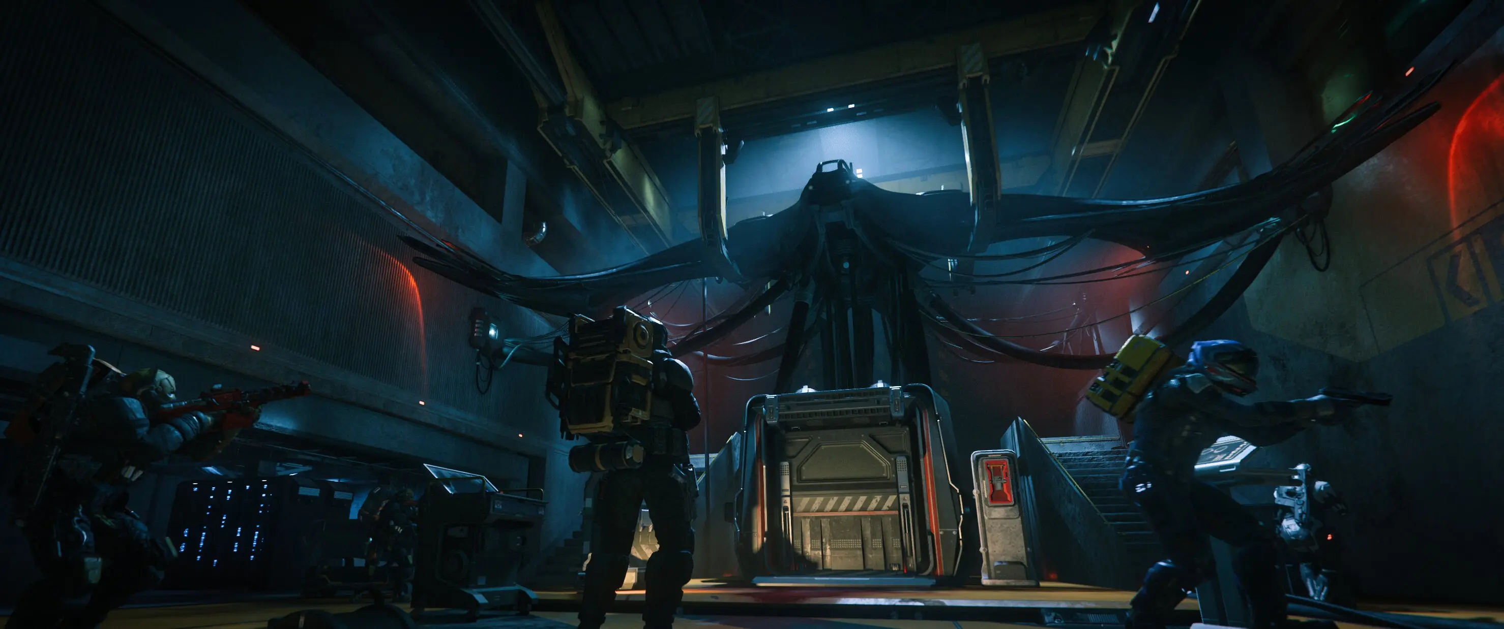 In der Tiefe der Halle herrschten die üblichen Symptome des Verfalls wie in der gesamten Station. Doch mittig, am Boden des Hallenendes, war ein Container leicht erhöht positioniert. Er wirkte wie ein Altar in einem alten Kirchenschiff. Über diesem Container breitete auf Höhe des ersten Stockwerkes etwas seine Schwingen aus. Wie ein Drache hing ein kleines Jagdraumschiff direkt über diesem „Altar“. Die organische Formensprache des Fliegers legte nahe, dass es sich hierbei um einen Jäger der Vanduul handeln musste. Ich kannte die einzelnen Typen dieser Raumschiffe, der schlimmsten Feinde der Menschheit, nicht. Doch jedes Kind konnte die Form eines Vanduul-Jägers von der Form eines von Menschen gebauten Raumschiffes unterscheiden. So eindeutig war die Anmutung, die mehr an einen Raubvogel oder Drachen erinnerte als an ein Stück Technik. Husky, Pike, Brubacker und ich standen mit weit geöffneten Mündern vor diesem nahezu religiös aufgeladenen Arrangement: 'Altar und Gottheit'.