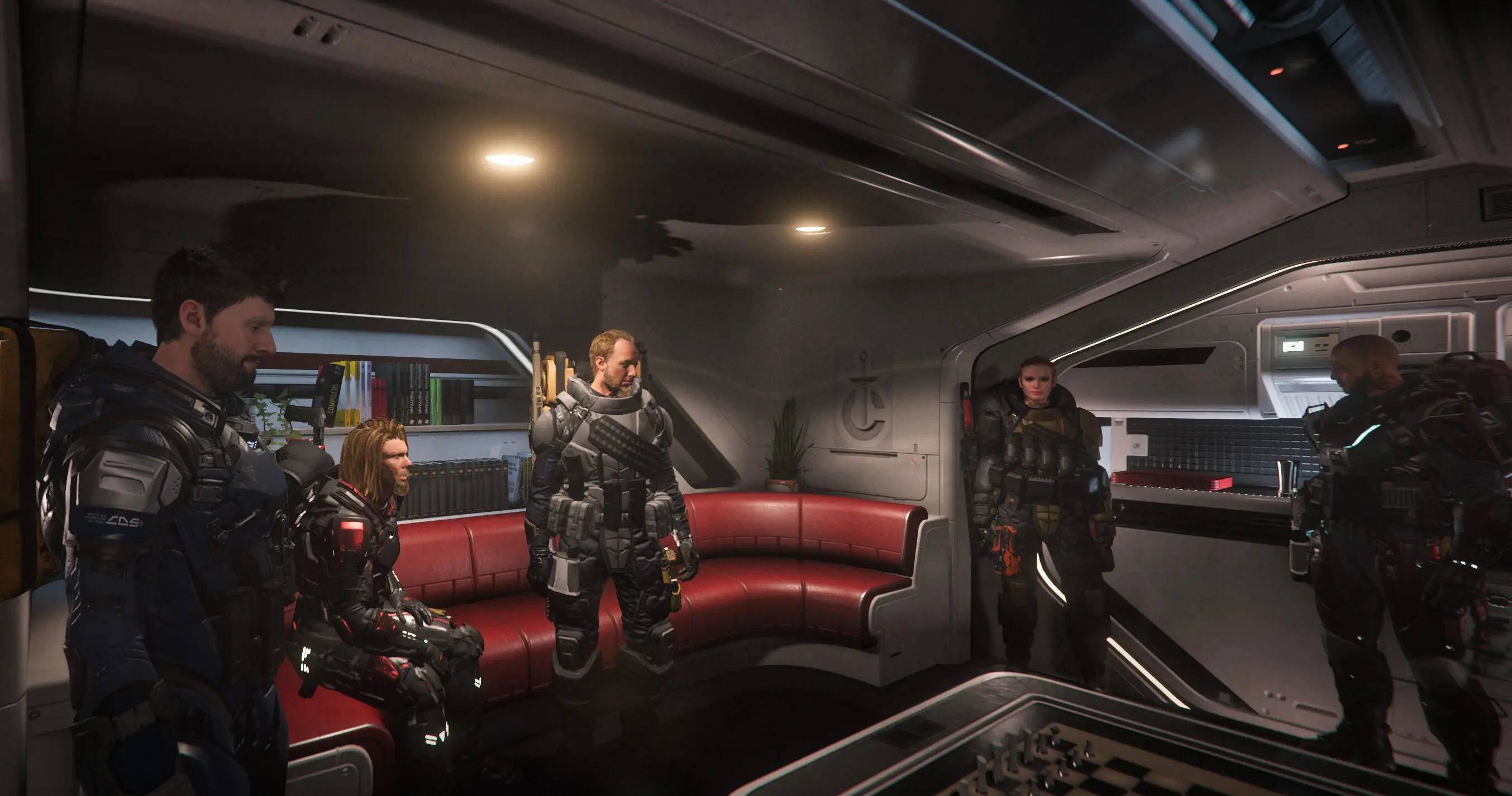 Stumm folgten wir ihm in einer Art Gänsemarsch. Alle mussten wir durch einen Medic-Rover hindurch, um in den Hauptteil des Schiffes zu gelangen. Einige nahmen sich noch Utensilien aus den Fächern, wissend, dass sie diese lebensrettenden Dinge bald brauchen würden. Zero wartete bereits im Freizeitbereich seiner "White Rabbit" auf die Gruppe. Mitten im Raum dominierte ein wirklich wunderschönes Schachspiel die Szenerie. Scheinbar, um die Stimmung zu lockern, sagte er: „Da, Alaska, auf dem Schachbrett! Dort liegen noch zwei Artefakte. Vielleicht kannst du, alter Archäologe, diese Dinge mal bestimmen, wenn wir wieder Zeit haben, uns friedlicheren Fragen zu widmen.“ Neugierig wanderte mein Blick auf das Brett. Und ja, einige verwitterte Gegenstände lagen kaum sichtbar zwischen den Figuren. Ich nahm sie beide an mich, warf einen kurzen Blick darauf und murmelte irgendetwas von „altesTevarinzeug“ oder Ähnlichem. Ich steckte die Gegenstände einfach ein.