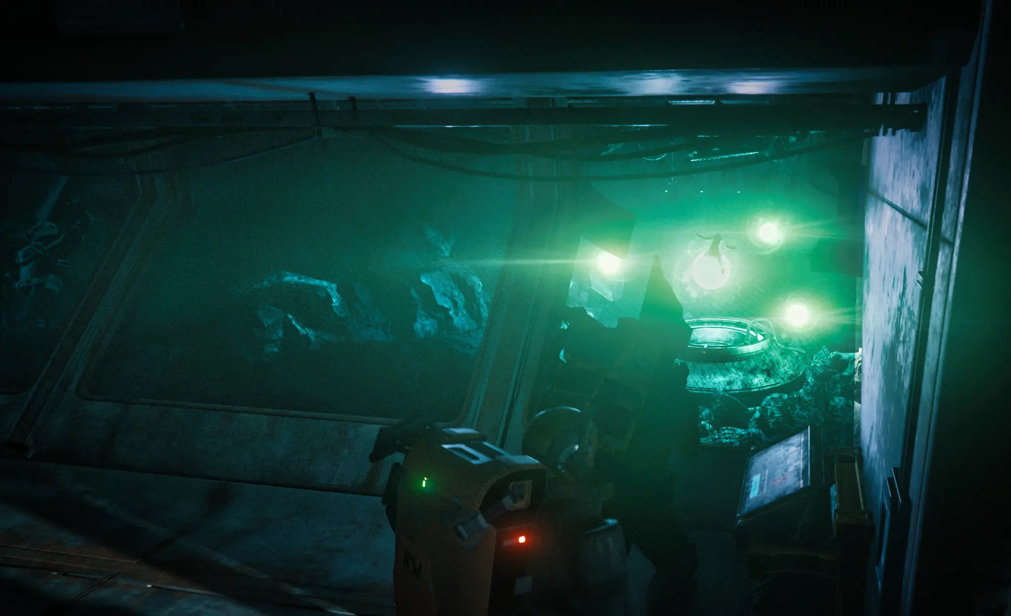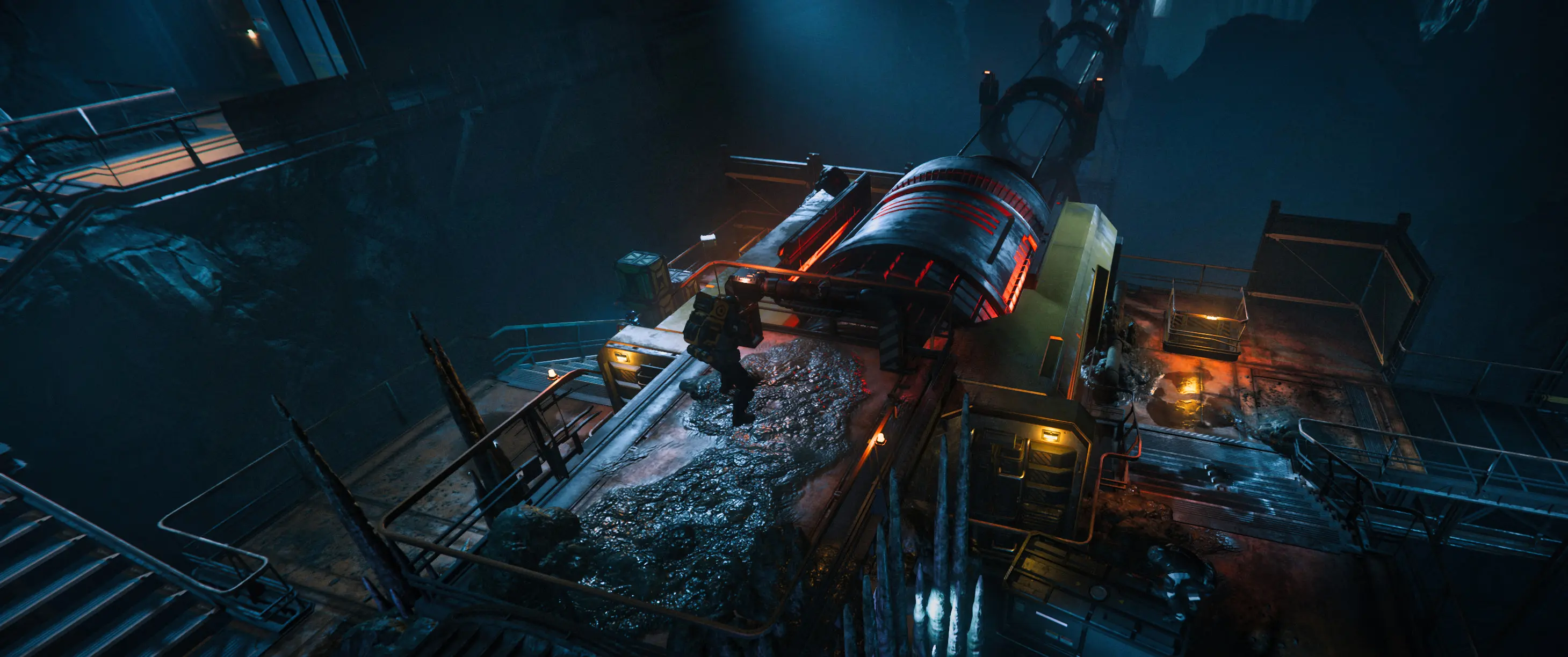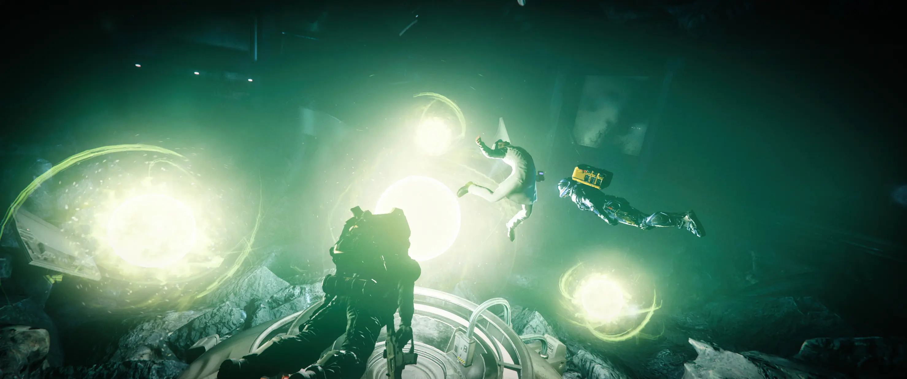 Wir schlichen den Gang weiter. Was sich meinen Augen dann bot, war vollkommen unfassbar. Eine mehrere hundert Meter durchmessende Felsenhalle, einem Dom gleich. Auch hier wieder mit einer mittigen, erhöhten Plattform, über der ein grünlicher, sonnenähnlicher Ball schwebte. Das musste die deutlich größere Ausgabe des Experimentes sein, was wir vorher gesehen hatten! Was hier an Energie umgesetzt wurde, entzog sich meiner kompletten Vorstellungskraft. Ich bekomme nicht mehr genau hin, diese Halle zu beschreiben, denn das, was jetzt folgte, war ein ziemliches Durcheinander aus Kampfszenen und EVA-Sprüngen, von einer Plattform zur nächsten.