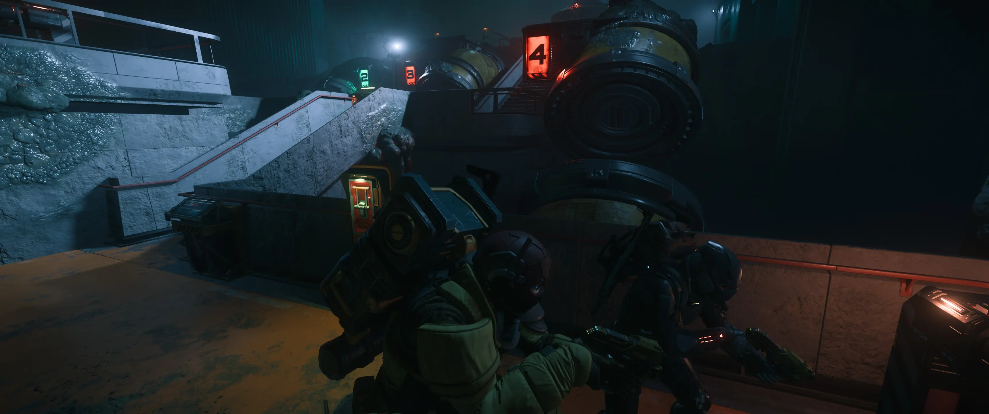 Der Aufzug brachte uns direkt in den Engineering Wing, und kaum öffneten sich die Türen, erwarteten uns gleich vier dieser kleinen, wurmähnlichen Kreaturen.