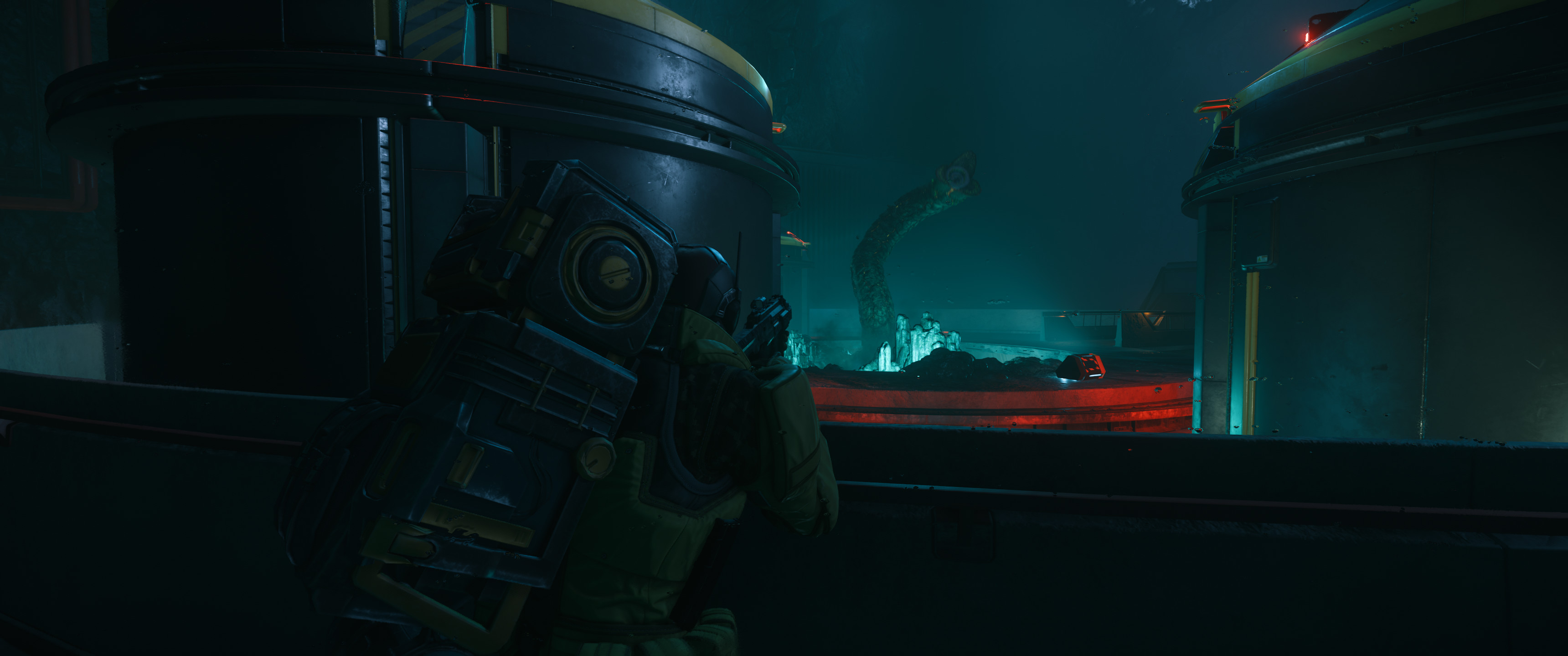 Der Aufzug brachte uns direkt in den Engineering Wing, und kaum öffneten sich die Türen, erwarteten uns gleich vier dieser kleinen, wurmähnlichen Kreaturen.
