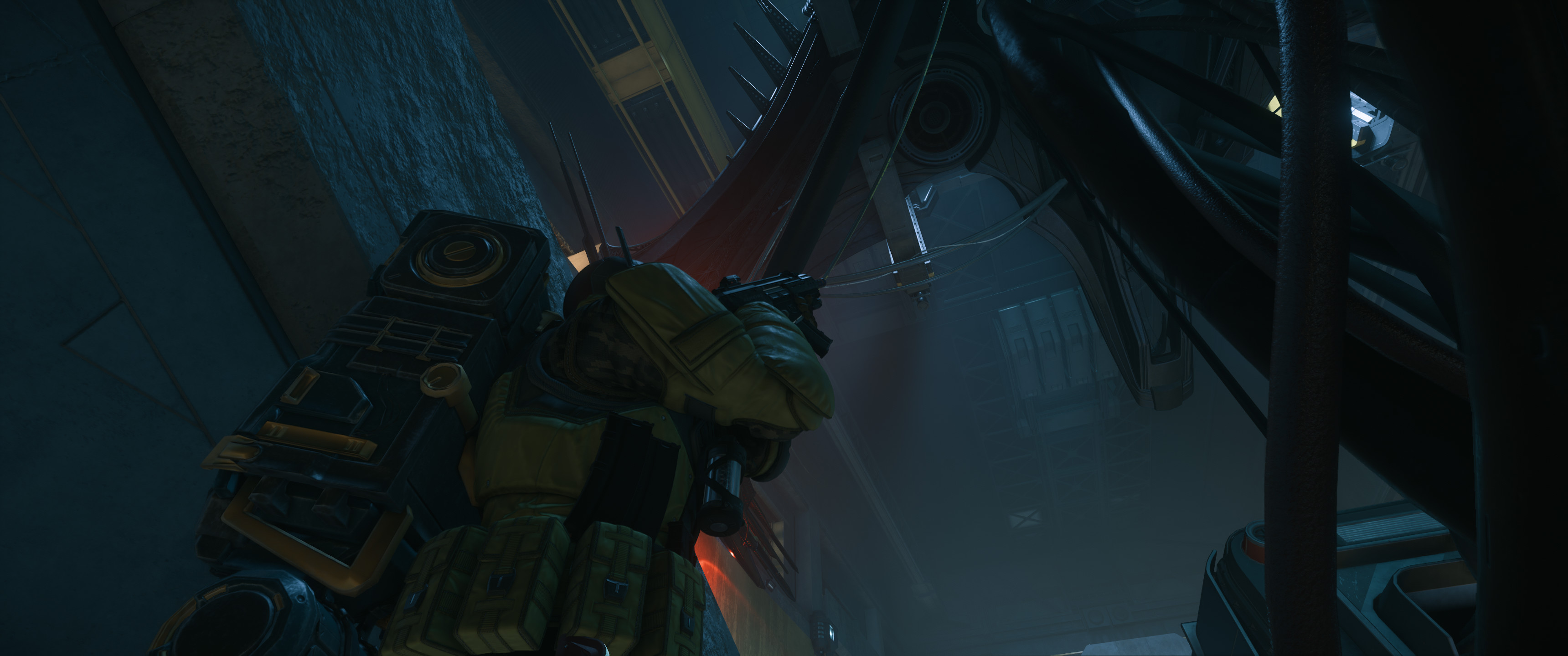 Das Highlight – oder eher der Schock – war ein Vanduul-Schiff, das von der Decke hing, als wäre es Teil irgendeines bizarren Experiments.