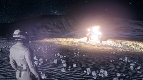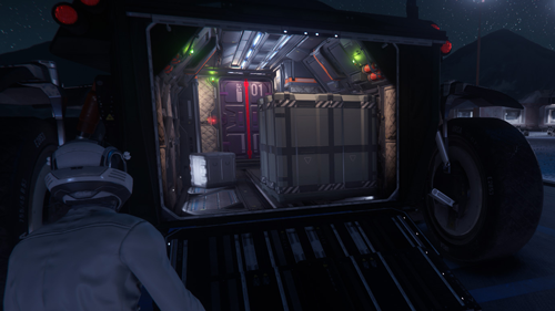 Seit der Alpha v3.15 entstehen beim zerstören von Fahrzeugen Cargo-Kisten, wenn sich im Inventar des Fahrzeugs Gegenstände befinden. Im folgenden Beispiel wird der Ablauf beschrieben, wie man Kisten zunächst erzeugt und danach weiterverwendet. Welches Fahrzeug ihr benutzt, spielt dabei keine Rolle. Wir haben uns für den "RSI URSA ROVER" entschieden, weil man ihn auf einem Outpost spawnen kann.