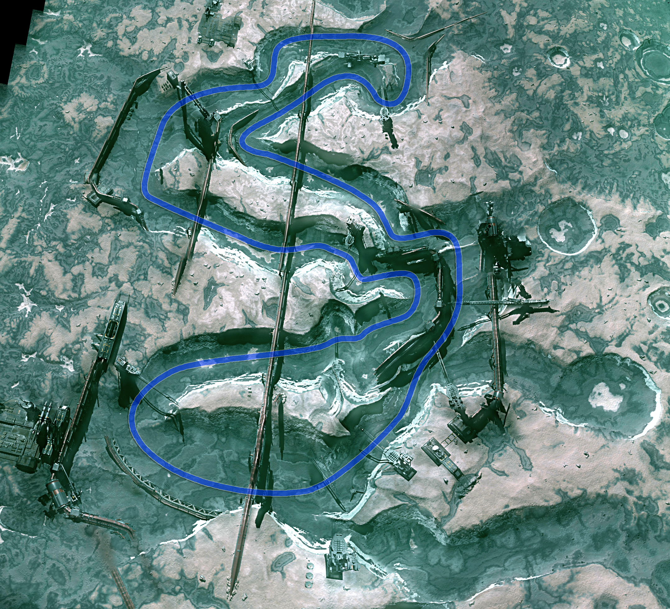 Diese Karte der SnakePit Rennstrecke wurde aus mehreren Screenshots mit der hier beschriebenen Methode erstellt: