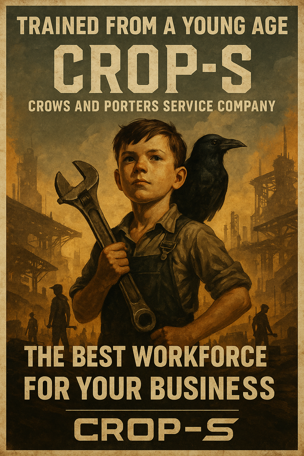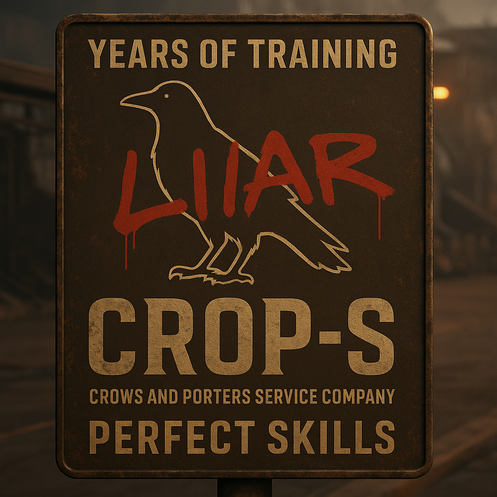 Am 07. Mai 2930 gründeten sie gemeinsam die Crows and Porters Service Company – CROP-S. Offiziell ein Dienstleister für technische Wartung und industrielle Logistik, inoffiziell jedoch bald bekannt unter der Handbezeichnung „Slave-Market“, wobei das große S im Firmennamen mehr als nur zufällig gewählt scheint.