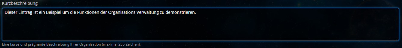 Organisation erstellen & bearbeiten - Organisationsname Organisations erstellen & bearbeiten (Kurzbeschreibung)