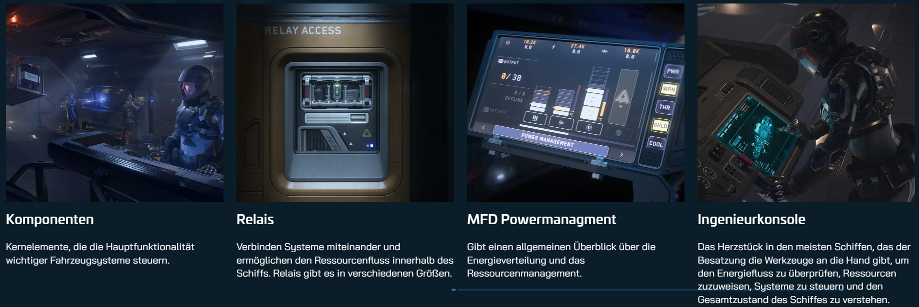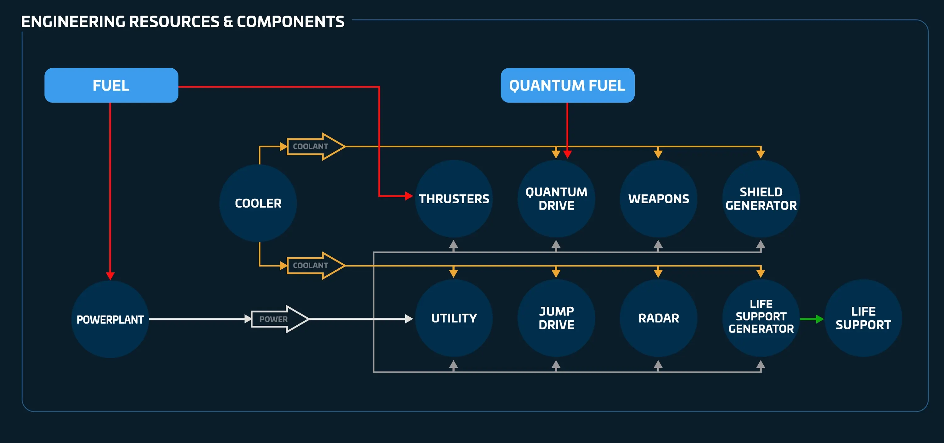 • Engineering ist ein zentrales Gameplay-System in Star Citizen, das die Echtzeitverwaltung von Schiffssystemen und Ressourcen ermöglicht. Spieler überwachen Komponenten, verteilen Energie, reagieren auf Schäden und führen Reparaturen durch, um Schiffe möglichst lange einsatzfähig zu halten. Besonders auf Multicrew-Schiffen ist abgestimmtes Engineering entscheidend für Effizienz, Überlebensfähigkeit und taktische Flexibilität im Einsatz.