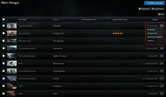 Nach dem Hinzufügen wird Eure Flotte unter dem Menüpunkt "Hangar" in eurem Benutzerprofil angezeigt.