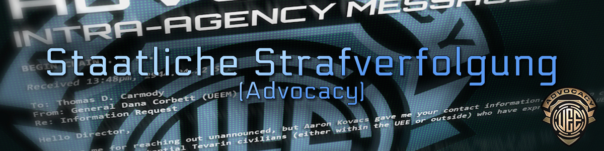 Dieser Text ergänzt den allgemeinen Leitfaden zur Charaktererstellung. Er richtet sich an Spieler, die einen Charakter in der staatlichen Strafverfolgung der UEE spielen möchten, etwa als Angehörige der Advocacy oder vergleichbarer imperialer Ermittlungs- und Vollzugsbehörden. Staatliche Autorität bedeutet rechtliche Legitimation, nicht persönliche Macht und nicht moralische Überlegenheit.