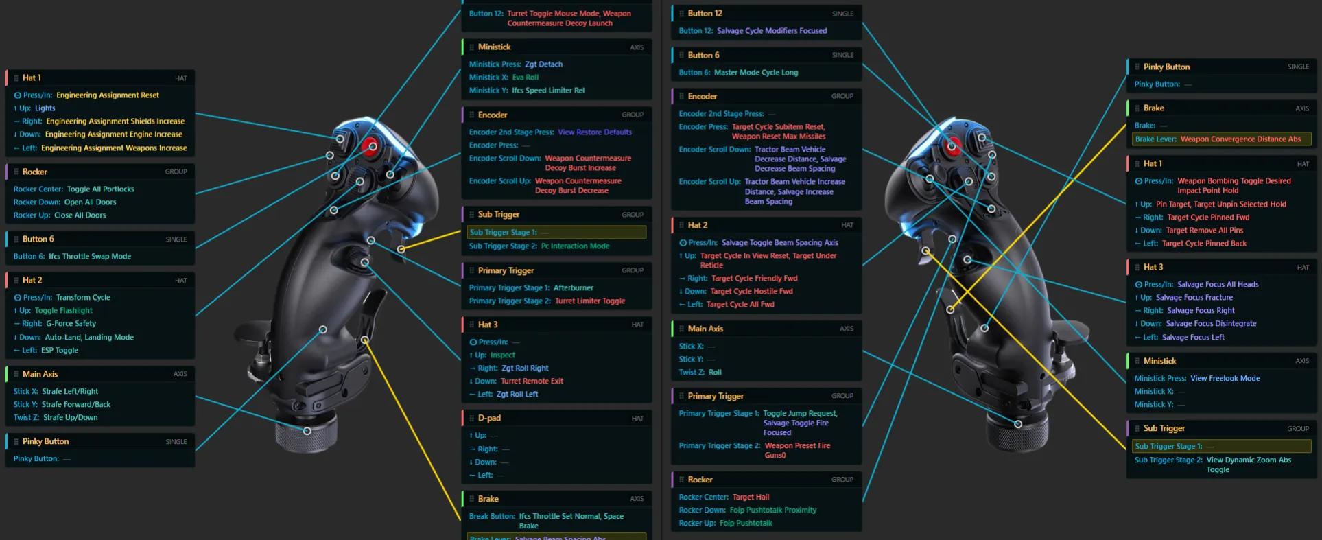 HOTAS Helper ist ein browserbasiertes Tool zur übersichtlichen Visualisierung von Flugstick-, HOTAS-, HOSAS- und Controller-Belegungen. Für Star Citizen können eigene Binding-Dateien hochgeladen und als grafische „Binding Cards“ dargestellt werden, um Tastenbelegungen schneller zu prüfen, zu dokumentieren und bei Bedarf neu zu organisieren. Die Seite unterstützt außerdem weitere Spiele wie Elite Dangerous, X4: Foundations und War Thunder und bietet optional einen Discord-Login, um Belegungen zu speichern.