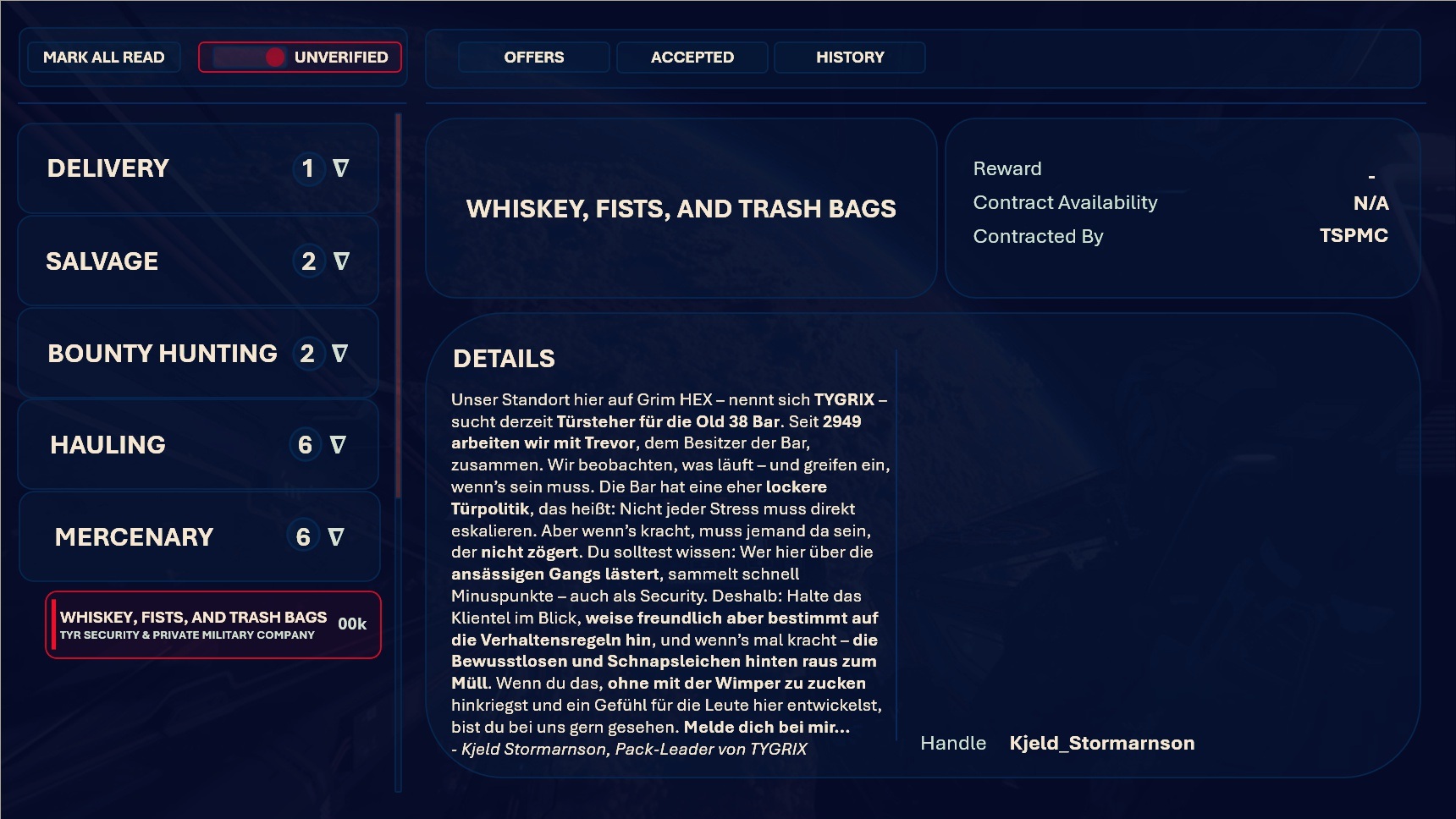 Hinweis: Diese Mission ist unverifiziert und wurde entsprechend als solche in deinem Contract Manager hinterlegt.