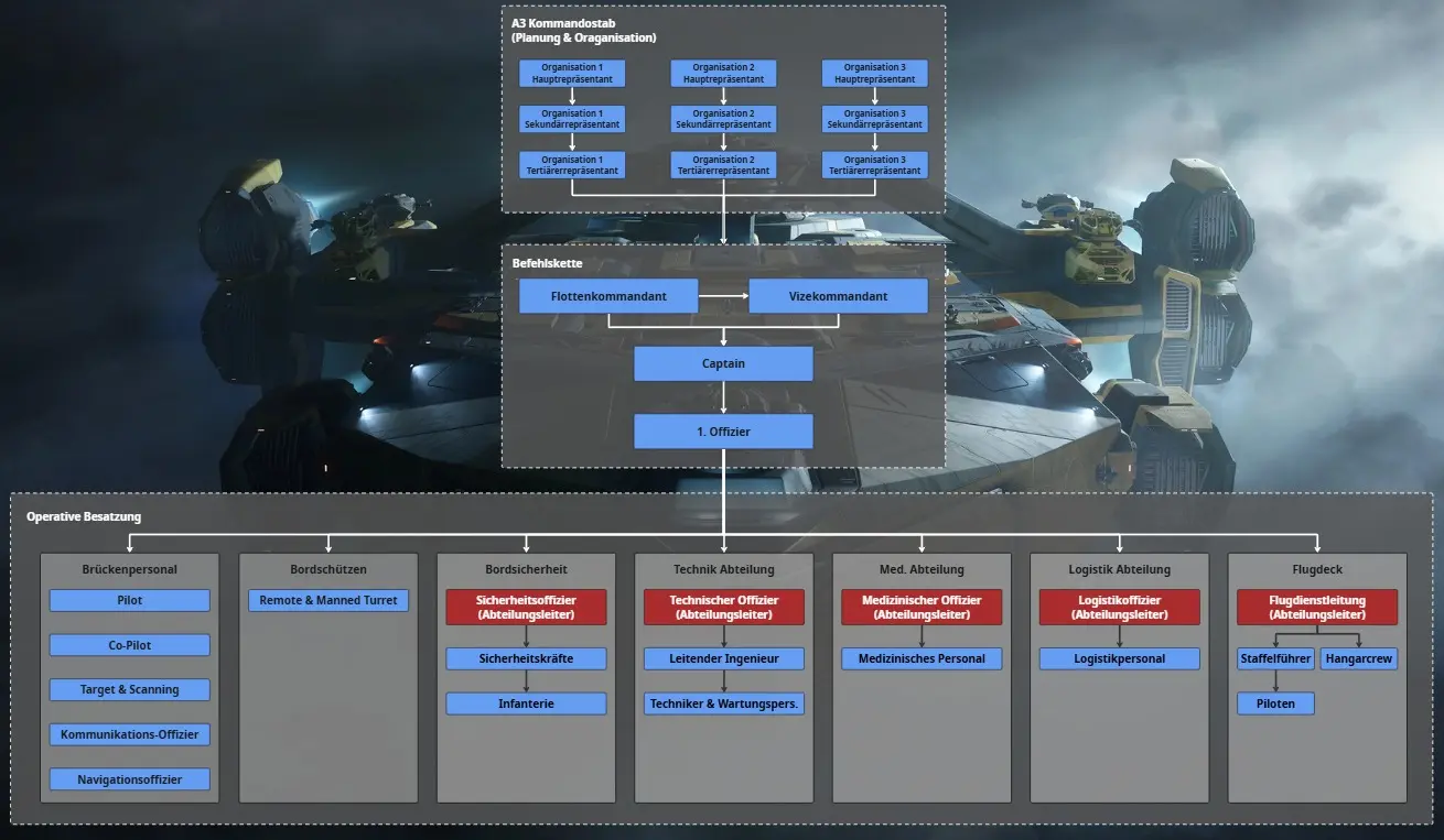 Auf einem Capitalschiff wie der Idris lebt gutes Roleplay davon, dass jede Position eine erkennbare Aufgabe hat und mit anderen Bereichen zusammenspielt. Manche Rollen stehen im Zentrum der Entscheidungen, andere halten das Schiff am Laufen, sichern Decks, versorgen die Besatzung oder sorgen dafür, dass im Ernstfall niemand allein dasteht. Genau daraus entsteht glaubwürdiges Bordleben.Die folgende Übersicht erklärt die verschiedenen Positionen der Idris…